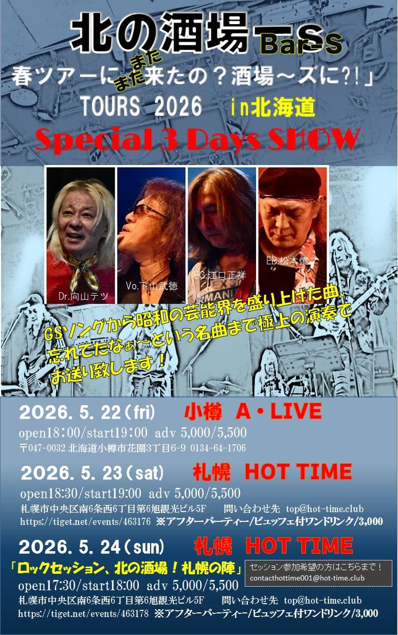 ・2026.5.24 (sun) 札幌HOT TIME 「ロックセッション、北の酒場!札幌の陣」
