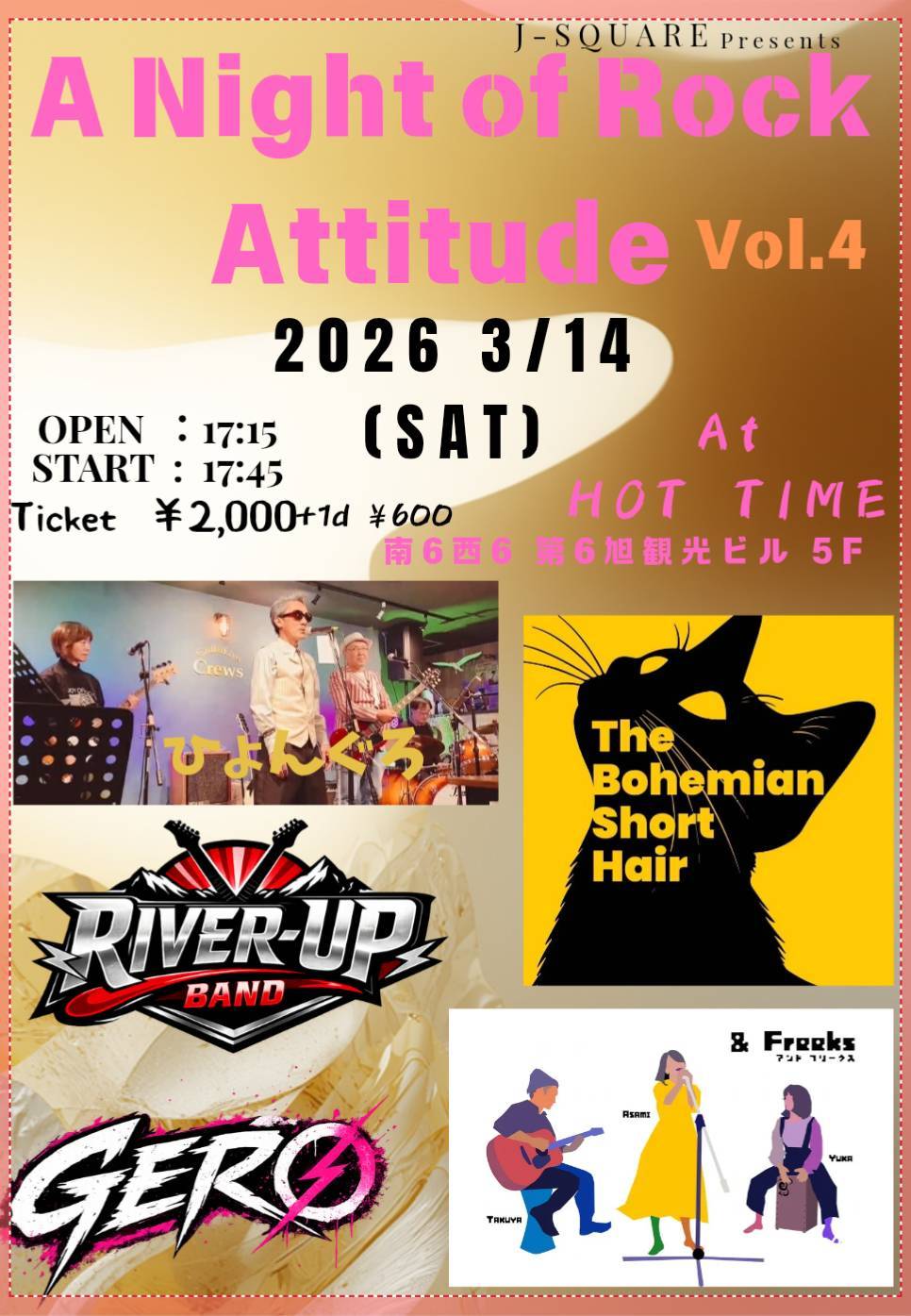 | Neo Kudo Tetsuya Project ~府民道民北海道2026~ 18:30 Neo Kudo Tetsuya Project ~府民道民北海道2026~ 2月 27 @ 18:30 ![]() 2025年9月27日(金) 札幌HOT TIME 〒064-0806 北海道札幌市中央区南6条西6丁目第6 旭観光ビル5F open 18:30 start 19:00 料金4,500円ドリンク別途600円 アフターパーティー\3000フード1D付き (出来るだけお釣りの必要ないように ご準備いただけると幸いです) Jam Session コーナー有り 入場順 TIGET整理番号順 → 当日 ご予約 TIGET予約 https://tiget.net/events/394912 (A101 からスタートになります) ※LIVE会場にはお客様用駐車場はございませんので 公共交通機関をお使いになられるか 近隣の有料駐車場をご利用下さい [ 支払方法 ] チケット代金は当日精算になります 予約名を申し出てください 出演者 工藤哲也 / 永川敏郎 / 伊藤大貴 / 小笠原義弘 Neo Kudo TetsuyaProject ~府民道民北海道2026~イベント 18:30 Neo Kudo TetsuyaProject ~府民道民北海道2026~イベント 2月 27 @ 18:30 ![]() 2025年9月27日(金) 札幌HOT TIME 〒064-0806 北海道札幌市中央区南6条西6丁目第6 旭観光ビル5F open 18:30 start 19:00 料金4,500円ドリンク別途600円 アフターパーティー\3000フード1D付き (出来るだけお釣りの必要ないように ご準備いただけると幸いです) Jam Session コーナー有り 入場順 TIGET整理番号順 → 当日 ご予約 TIGET予約 https://tiget.net/events/394912 (A101 からスタートになります) ※LIVE会場にはお客様用駐車場はございませんので 公共交通機関をお使いになられるか 近隣の有料駐車場をご利用下さい [ 支払方法 ] チケット代金は当日精算になります 予約名を申し出てください |