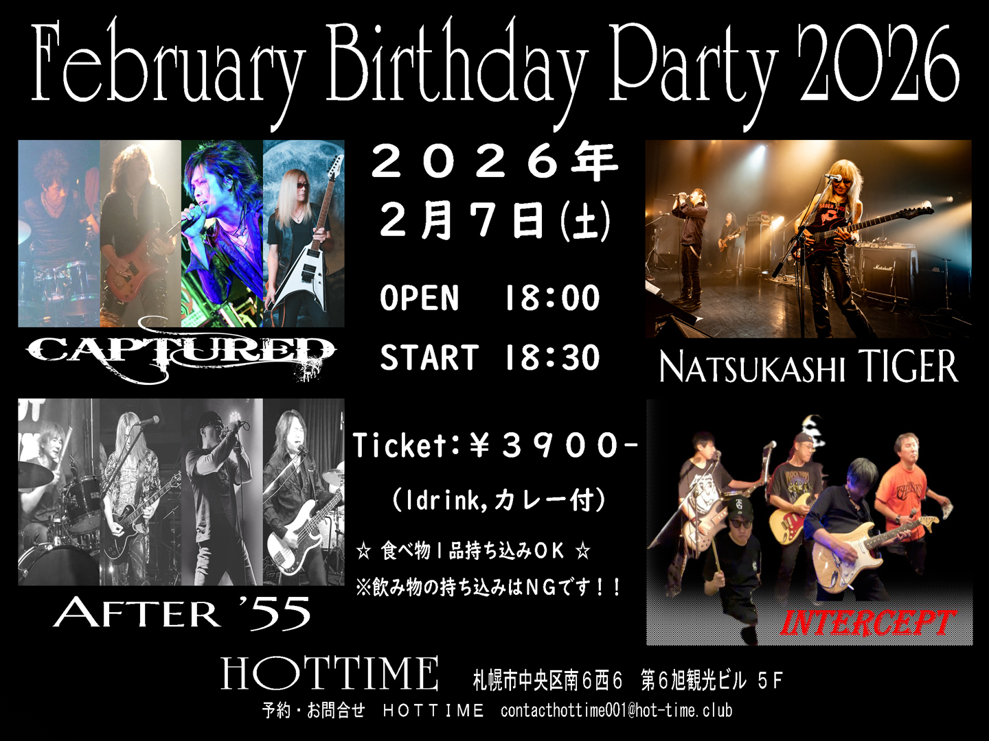 | Akihito Kinoshita Birthday Party 65 18:00 Akihito Kinoshita Birthday Party 65 1月 10 @ 18:00 ![]() Akihito Kinoshita Birthday Party 65 2026年1月10日(土) 開場18:00 開演18:30 料金¥3,500(1D別) カレービュッフェ付き 食べ物一品持ち込み可です! 会場 HOT TIME 札幌市中央区6条西6丁目 第6旭観光ビル 5F ・TIGET予約 TIGET予約 https://tiget.net/events/446678 ・お問い合わせHOT TIME contacthottime001@hot-time.club | ||||||